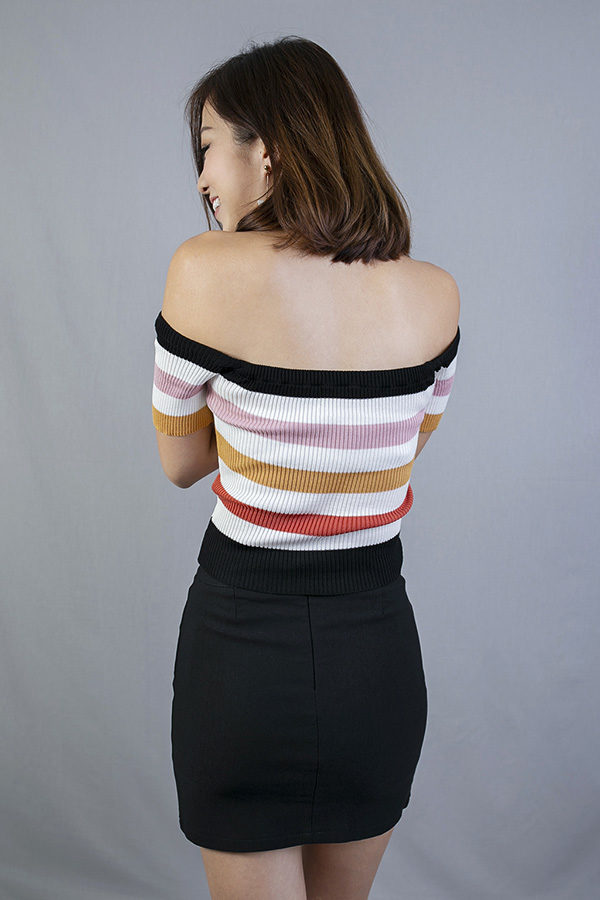 AISNLEY STRIPED OFF SHOULDER TOP (BLACK)