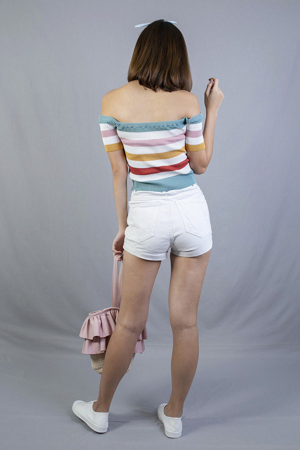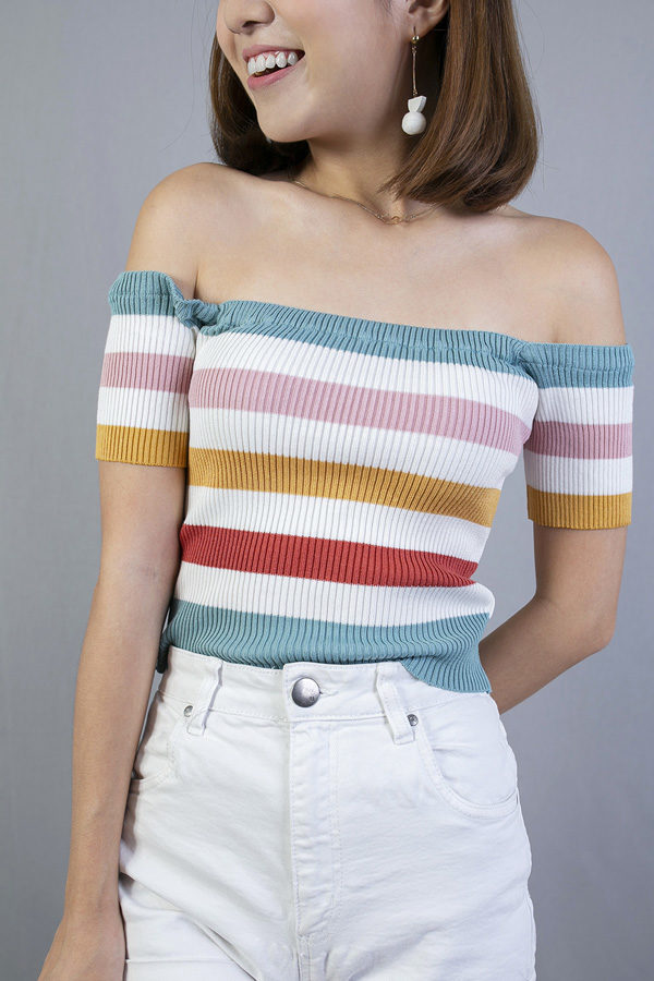 AISNLEY STRIPED OFF SHOULDER TOP (TURQUOISE)