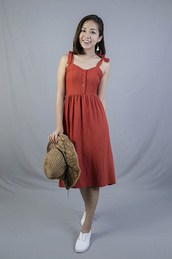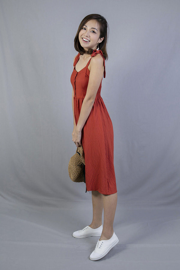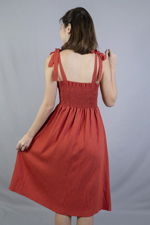 CANFERN TIE STRAP MIDI DRESS (ORANGE RED)