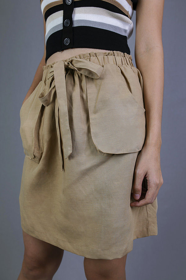 CAYDEE TIE SASH SKIRT (KHAKI)