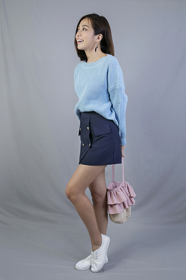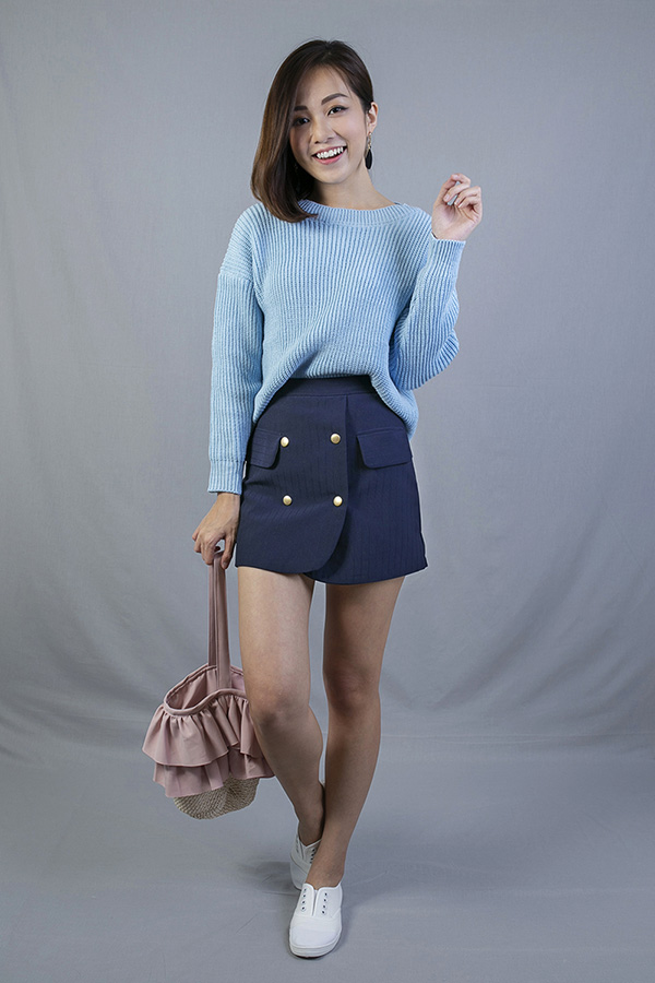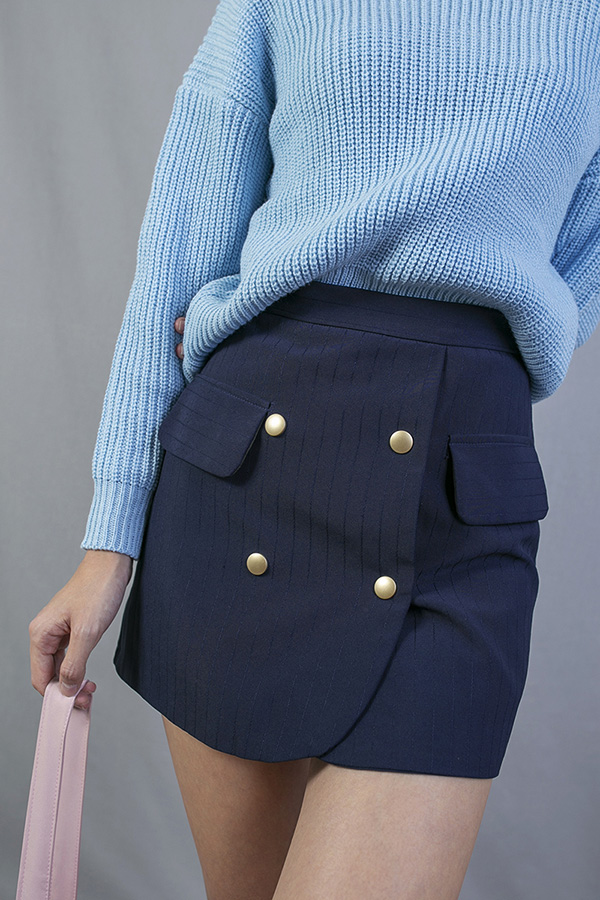 COLLEGE A-LINE BUTTON SKIRT (NAVY BLUE)