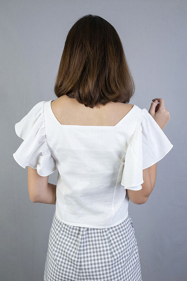 KALIE FLUTTER SLEEVE CROP TOP (WHITE)