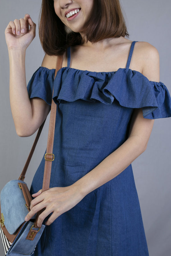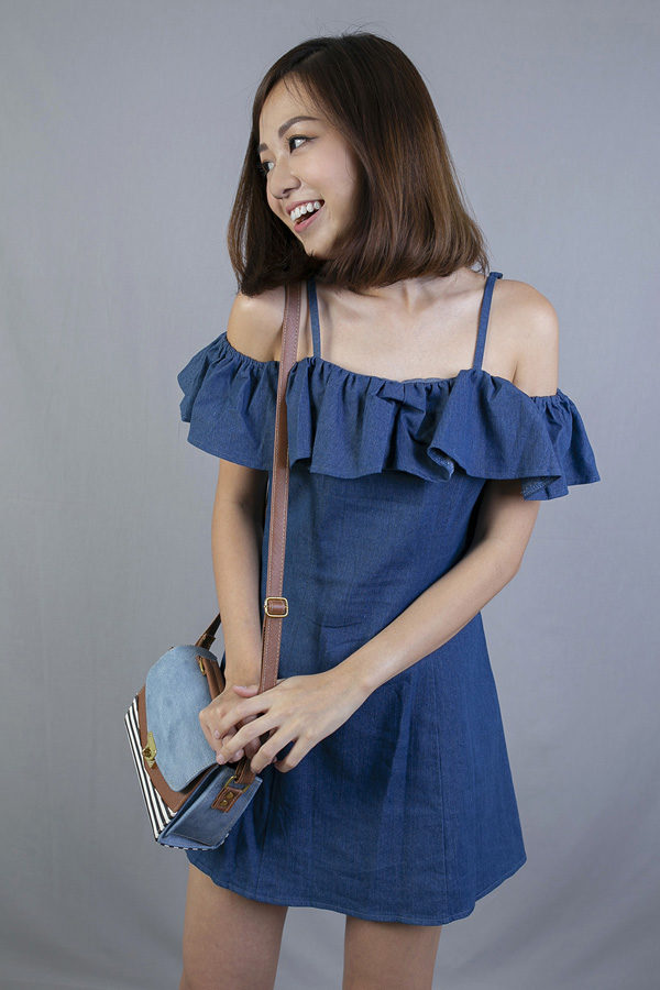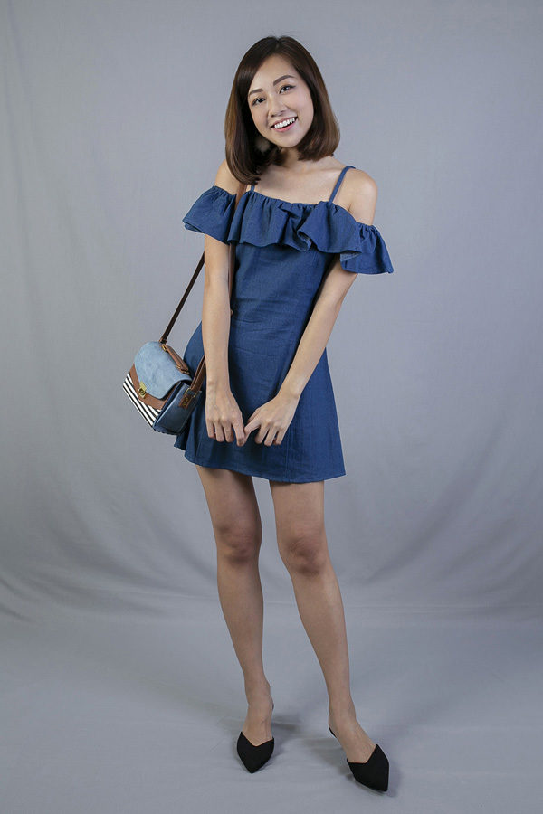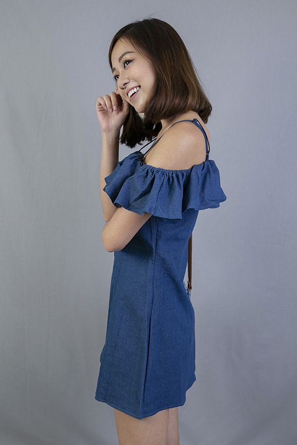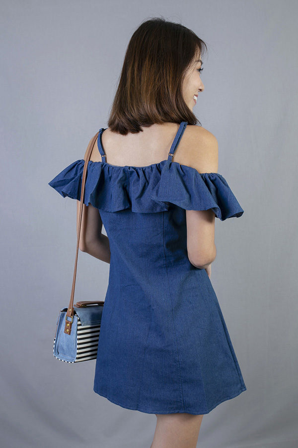 RANLEY RUFFLED DENIM DRESS (DARK BLUE)