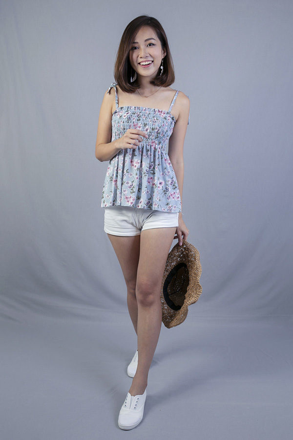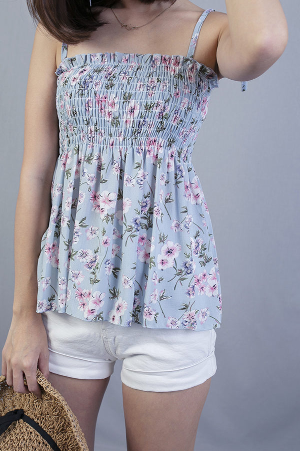 RILEY STRAP TIE FRILL FLORAL TOP (BABY BLUE)